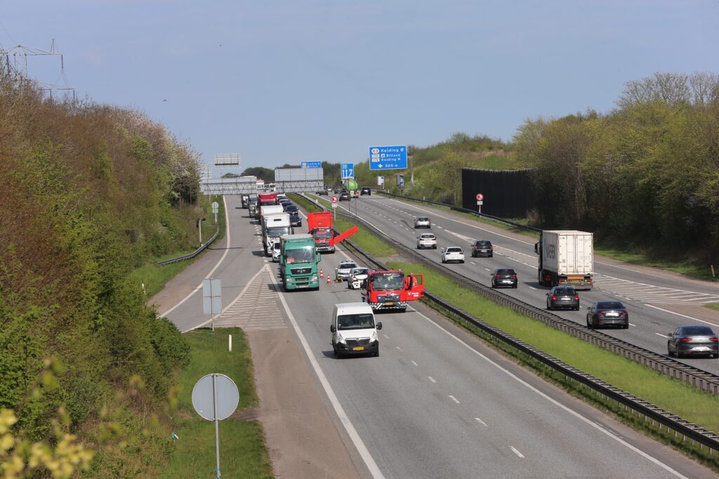 Politi og beredskab er tirsdag eftermiddag rykket ud til Sønderjyske Motorvej, hvor der mellem Kolding Ø og Bramdrupdam er sket et uheld, hvor en personbil er kørt op i bagsiden på en lastbil.