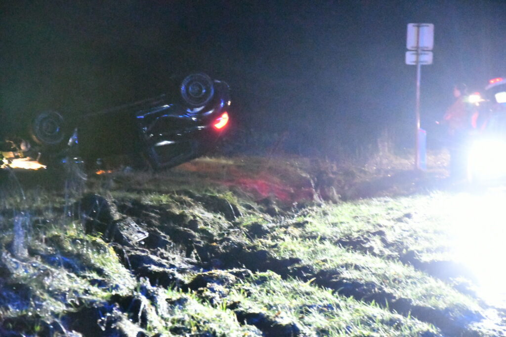 Et solouheld har fredag aften resulteret i, at en bil er endt på taget på Assensvej ved Frankfri på Fyn.