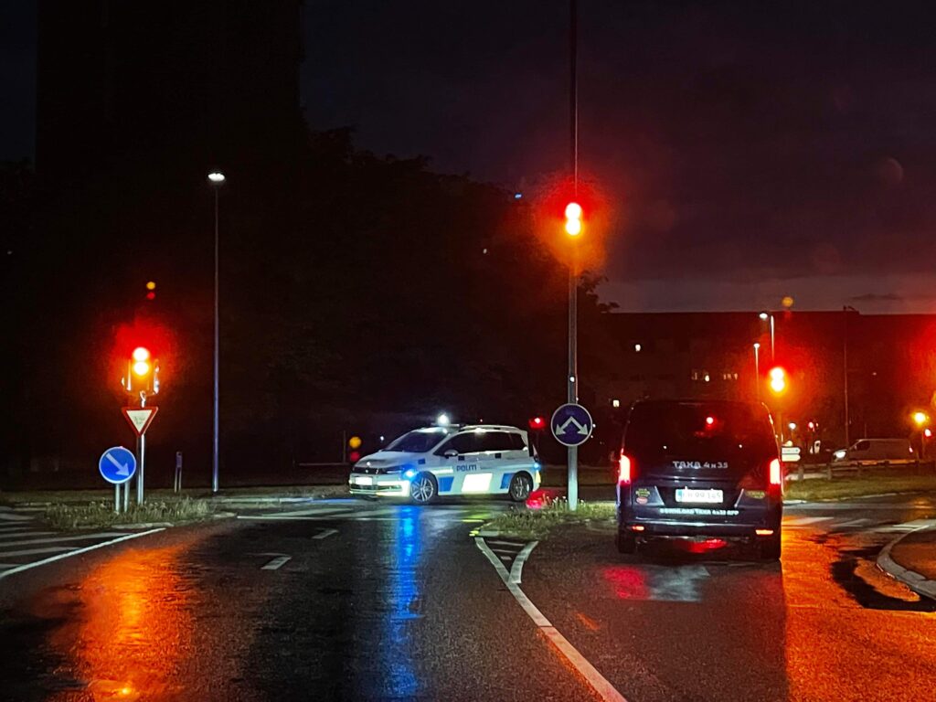 Vagthavende ved Københavns politi: Dyre Sønniksen fortæller til Presse-fotos.dk at en bil er kommet kørende af Tårnbyvej, hvor den blæste over for rødt og havnede inde i rundkørslen.