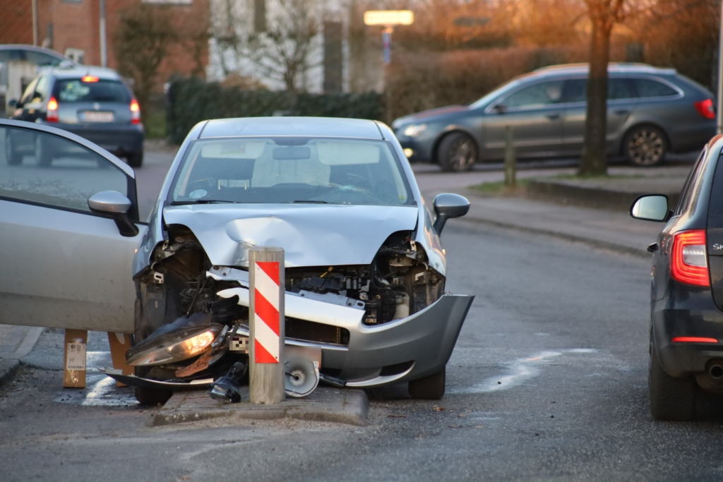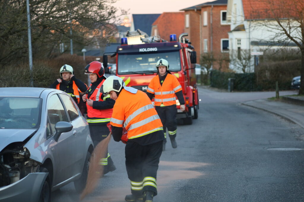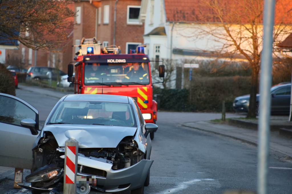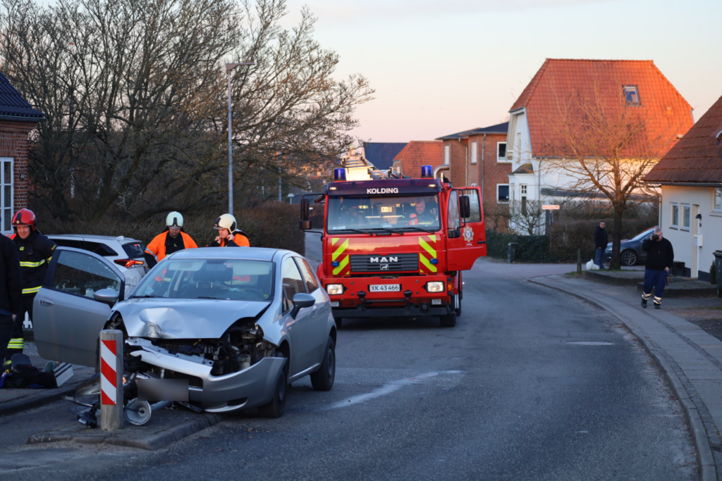 En bil har onsdag eftermiddag påkørt et helleanlæg på Lykkegårdsvej i Kolding.