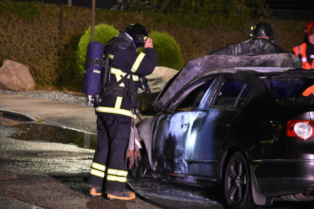 Ved brandvæsnet ankomst stod bilen opslugt af flammer og brandvæsnet påbegyndte hurtigt slukningsarbejdet.