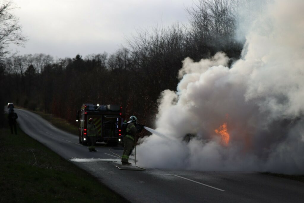 “Da ejeren kommer kørende, og bilen pludselig bryder i brand, kører han ind ad en stikvej mod skoven, så han ikke generer trafikken,” fortæller operationschef ved Østjyllands Brandvæsen, Søren Møller, til B.T.