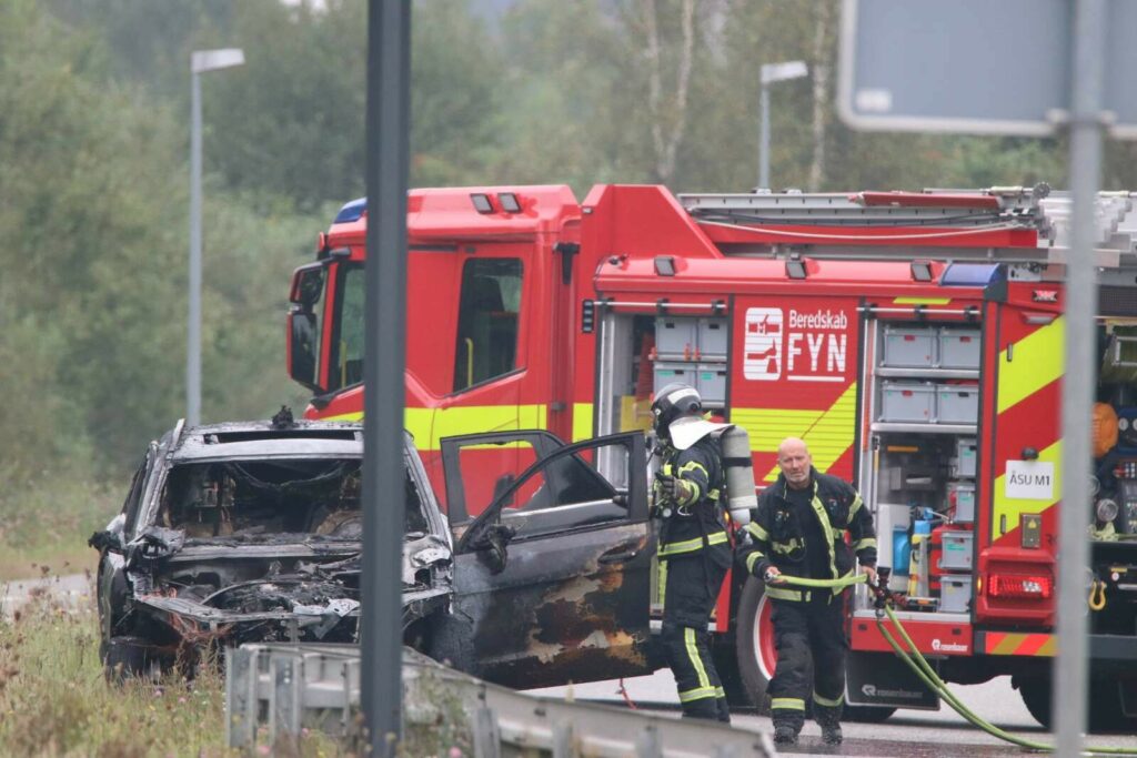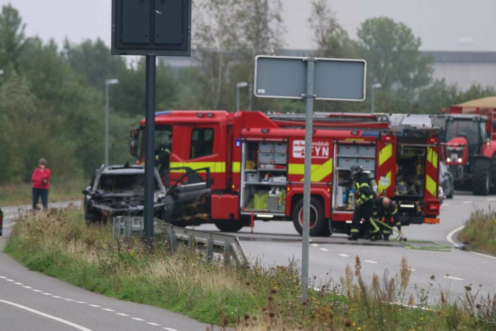 Beredskab Fyn ankom kort efter anmeldelsen til stedet i en enkel brandbil, hvor man kunne konstatere, at der var tydelige flammer i et køretøj.