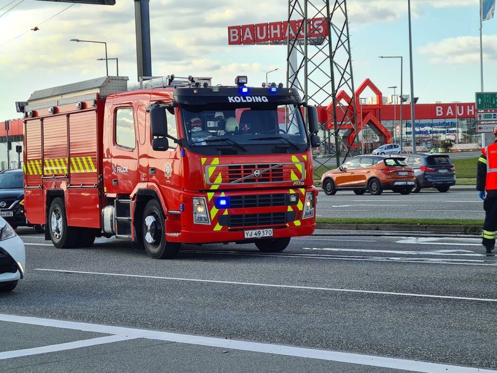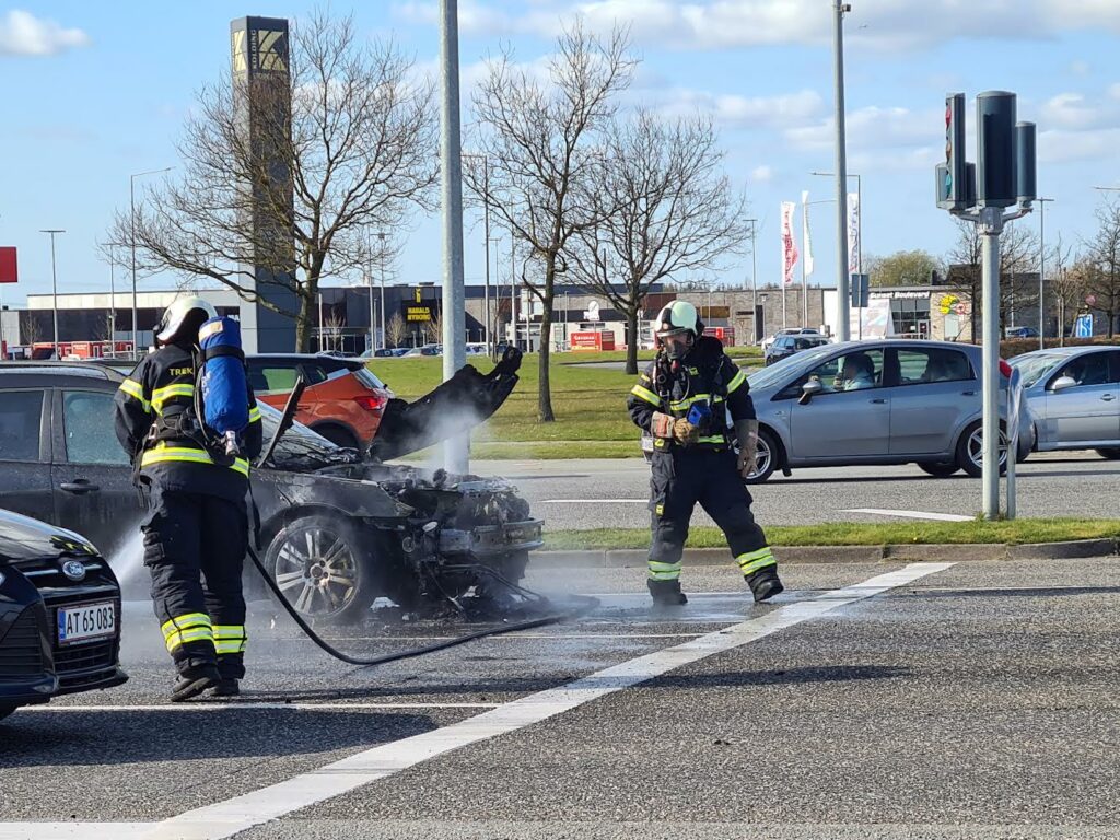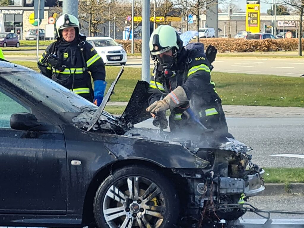 Trekant Brand og politiet er lørdag kaldt ud til en bilbrand i et svensk registreret køretøj i krydset Skovvangen/ Vejlevej i Kolding.