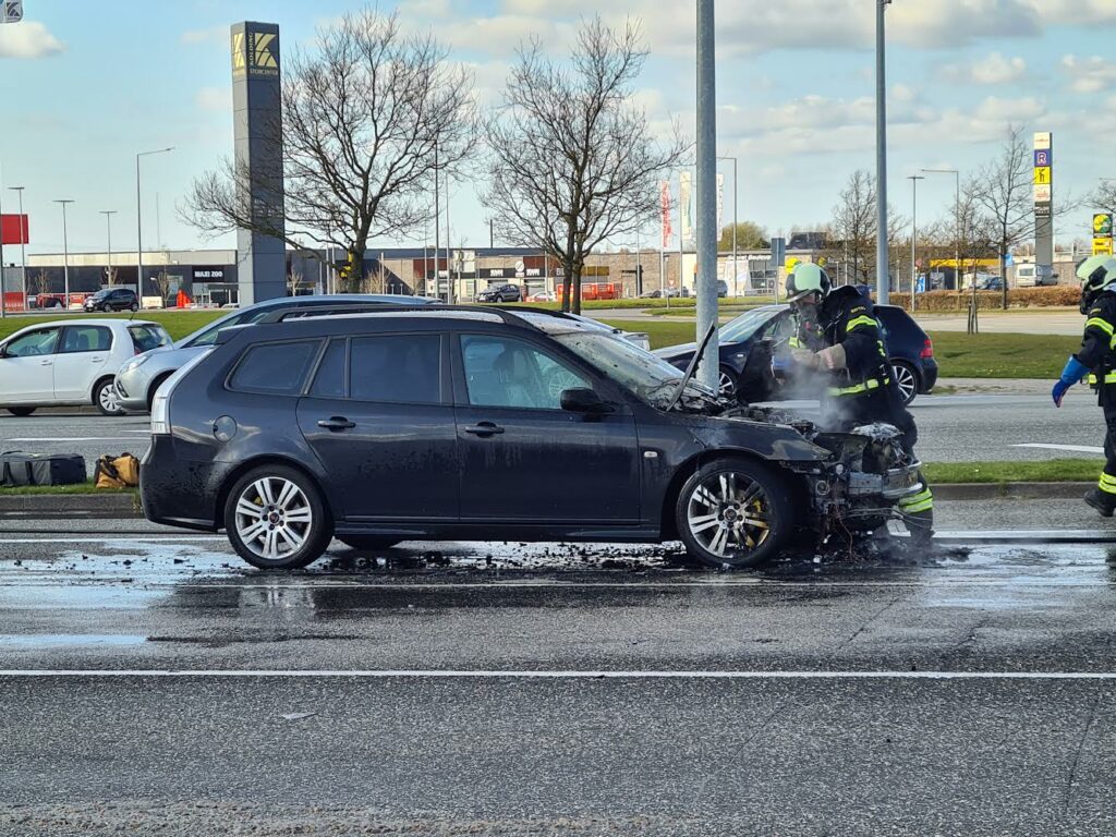 Bilen var brudt i brand midt i krydset, og politiet måtte derfor lukke den ene vejbane i krydset, for at få slukket branden.