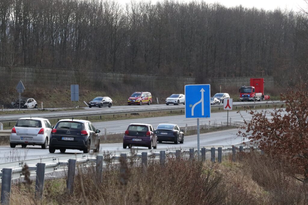 Vejen er spærret, og køretøjet holder i nødsporet.