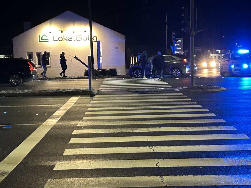 Torsdag eftermiddag er politiet og ambulancereddere hastet til et færdselsuheld, hvor en bilist er kørt en ind i et lyssignal, hvor to biler er involveret.