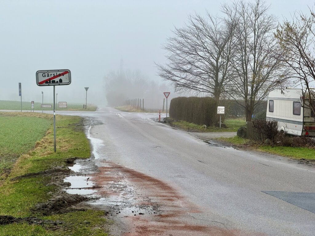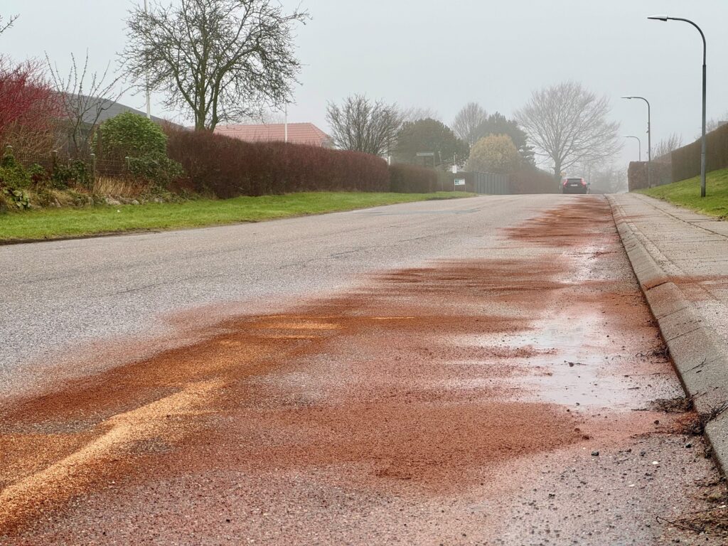 Ifølge Presse-fotos.dks udsendte er spildet sket over en 100 meter lang strækning fra byskiltet ved Gårslev til Bystedvænget.