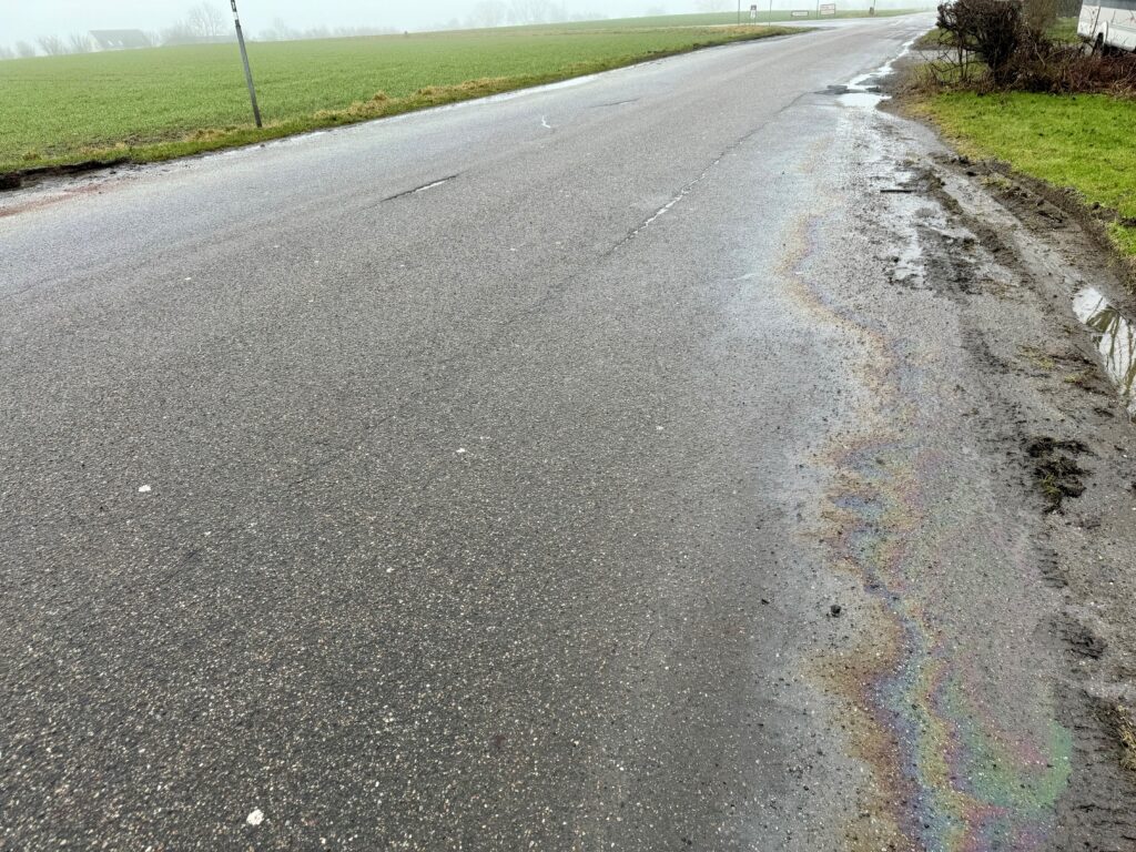 “Der ligger fortsat oliepletter på vejen nogle steder,” lyder det fra vores udsendte.