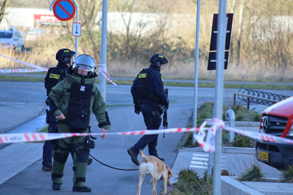 “Hændelsen omhandler et telefonopkald til byretten i Kolding fra en person med en bombetrussel rette imod byretten,” skriver de i en pressemeddelelse.