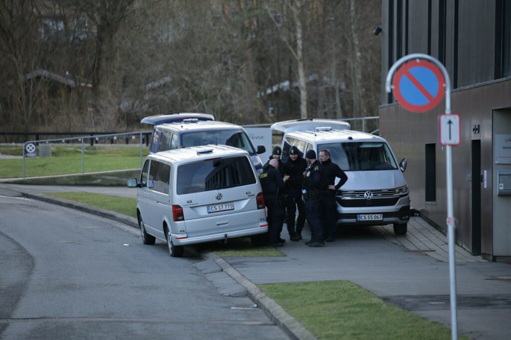 Politiet er tirsdag massivt til stede foran Retten i Kolding efter en bombetrussel mod byretten.