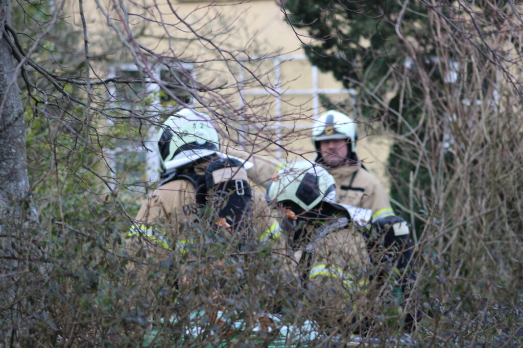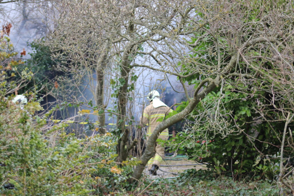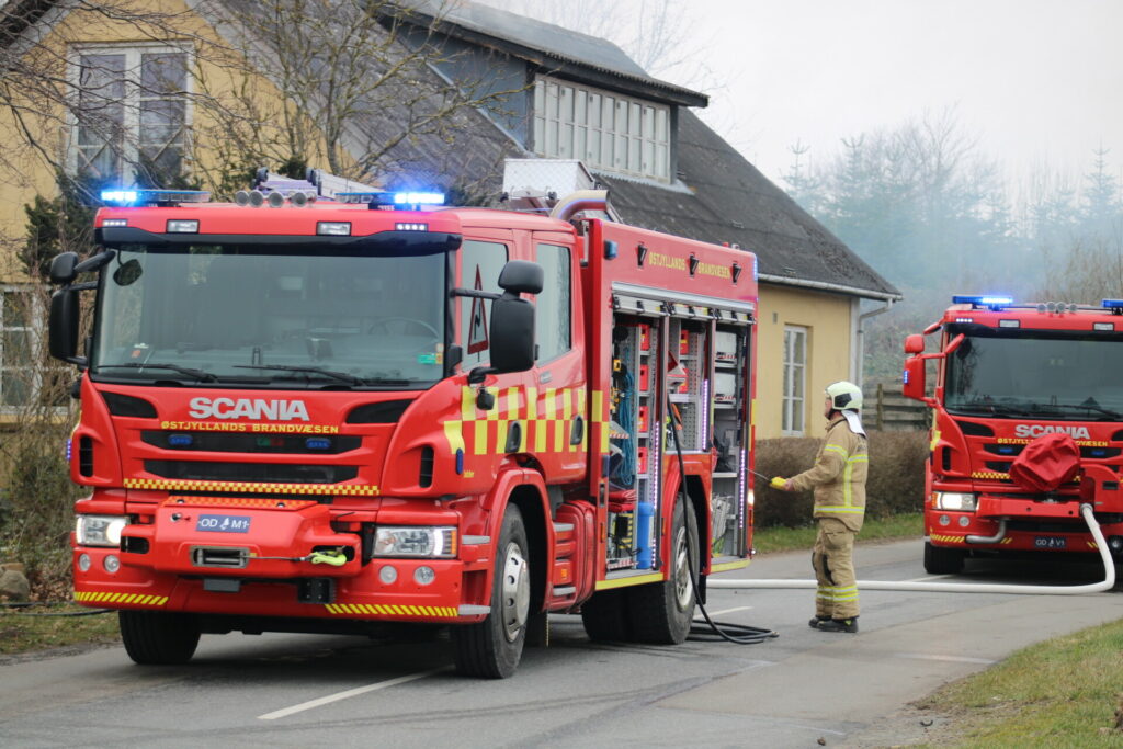 “Vi er tilstede i øjeblikket for at bekæmpe branden. Vi har forhindret branden i at brede sig til andre bygninger,” fortæller pressevagt Kirsten Dyrvig fra Østjyllands Brandvæsen til presse-fotos.dk