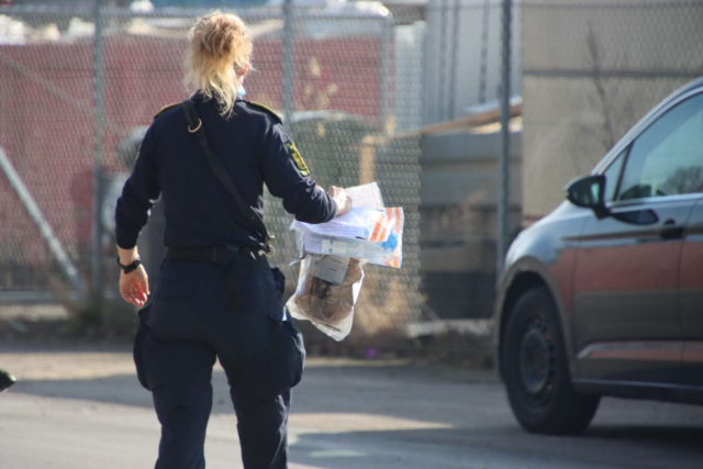 En patrulje er ankommet til stedet, hvor politiet er i gang med at undersøge, hvad der er gået ild i. Det er endnu uvist, om det er tale om et uheld eller en kriminel handling.