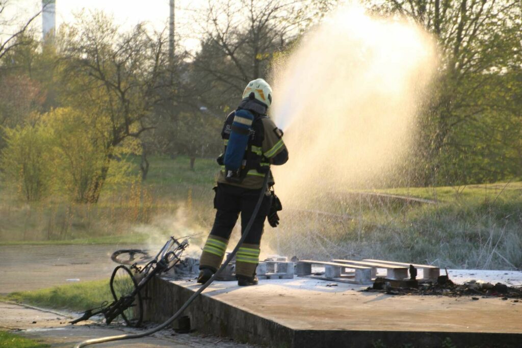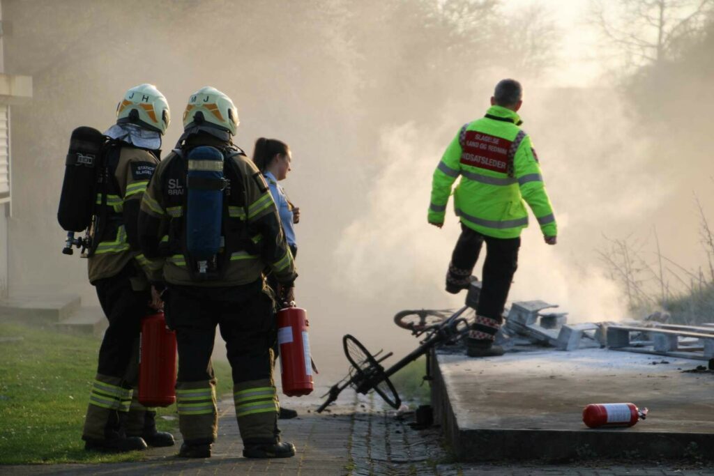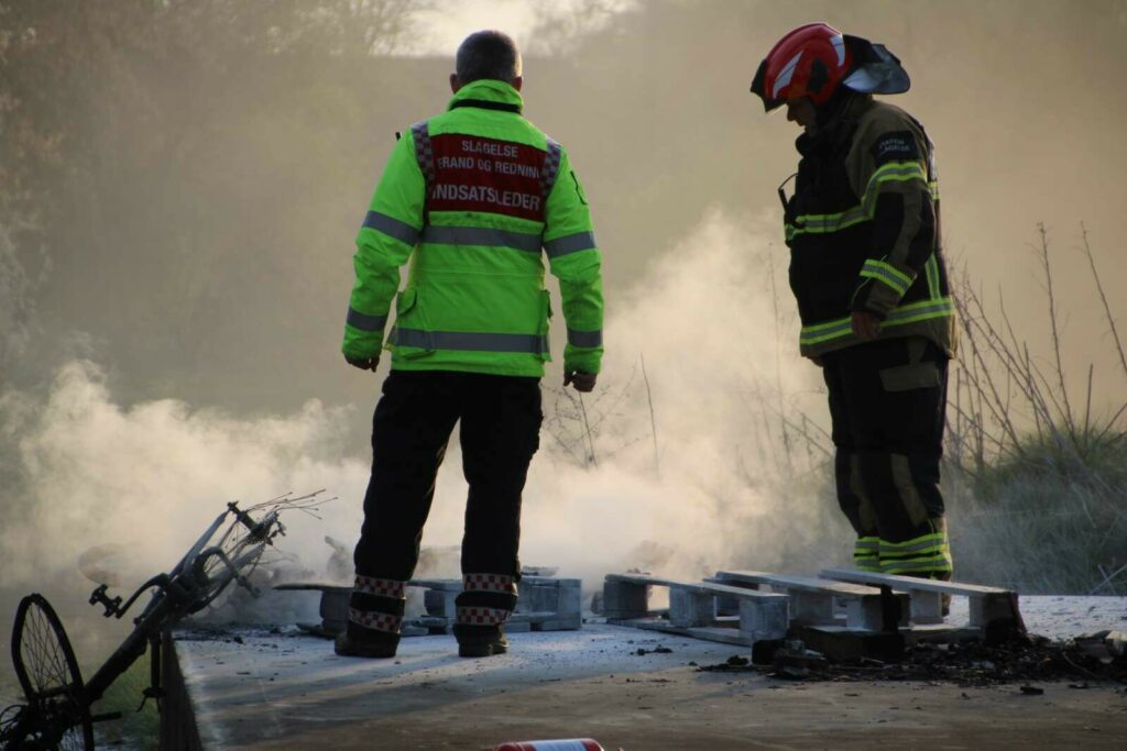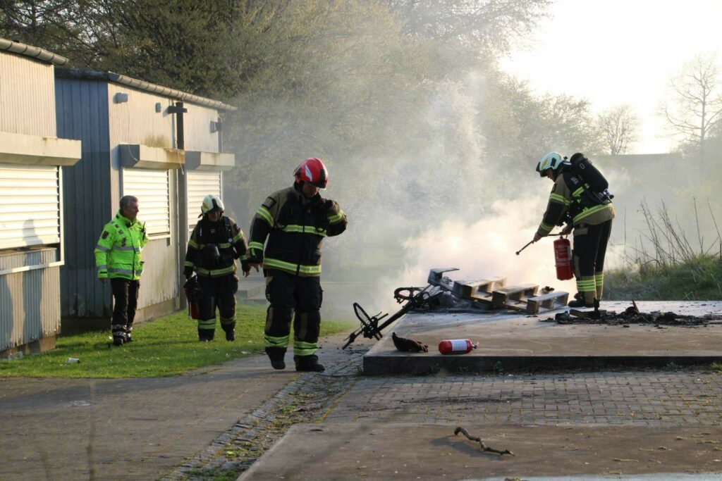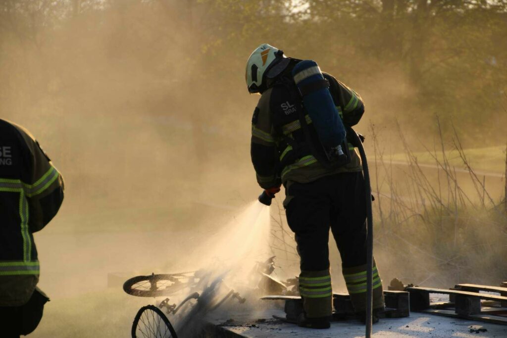 Politiet og brandvæsenet var søndag aften til stede på Albert Ibsens Vej i Slagelse efter en anmeldelse om ild i paller og en cykel ved et træhus.