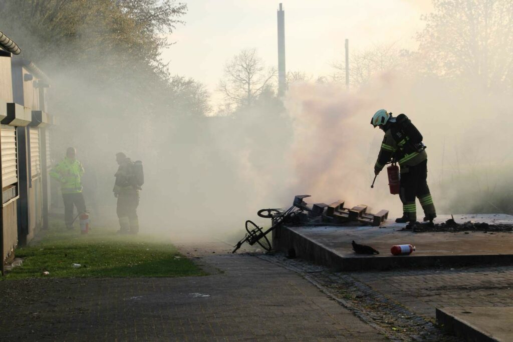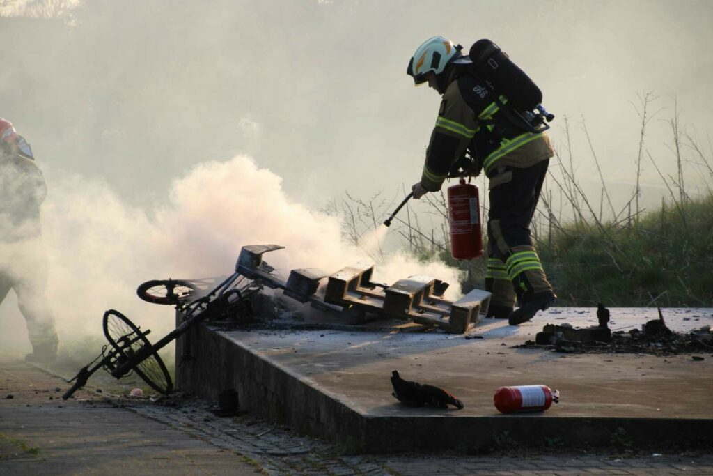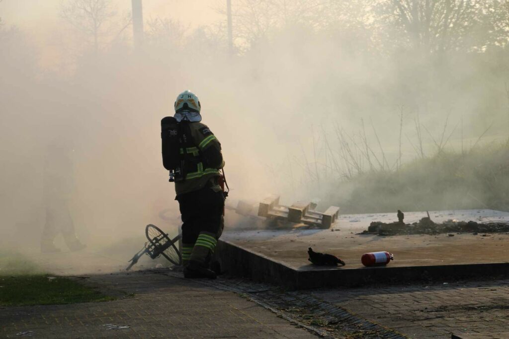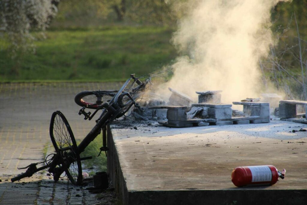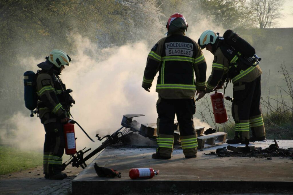 Politiet og brandvæsenet var søndag aften til stede på Albert Ibsens Vej i Slagelse efter en anmeldelse om ild i paller og en cykel ved et træhus.