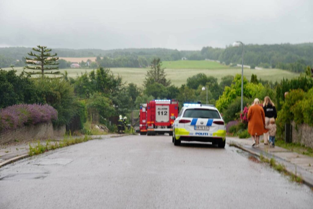 “Vi modtager anmeldelsen kl. 12.35, og da vi ankommer, er brandvæsenet i gang med at bekæmpe branden. Ilden er på det tidspunkt gået igennem taget. Beboerne er ude, og de er blevet tilset for røgskader, men beboerne er okay,” siger vagtchef hos Sydsjællands og Lolland-Falsters Politi, Ole Hald, til presse-fotos.dk