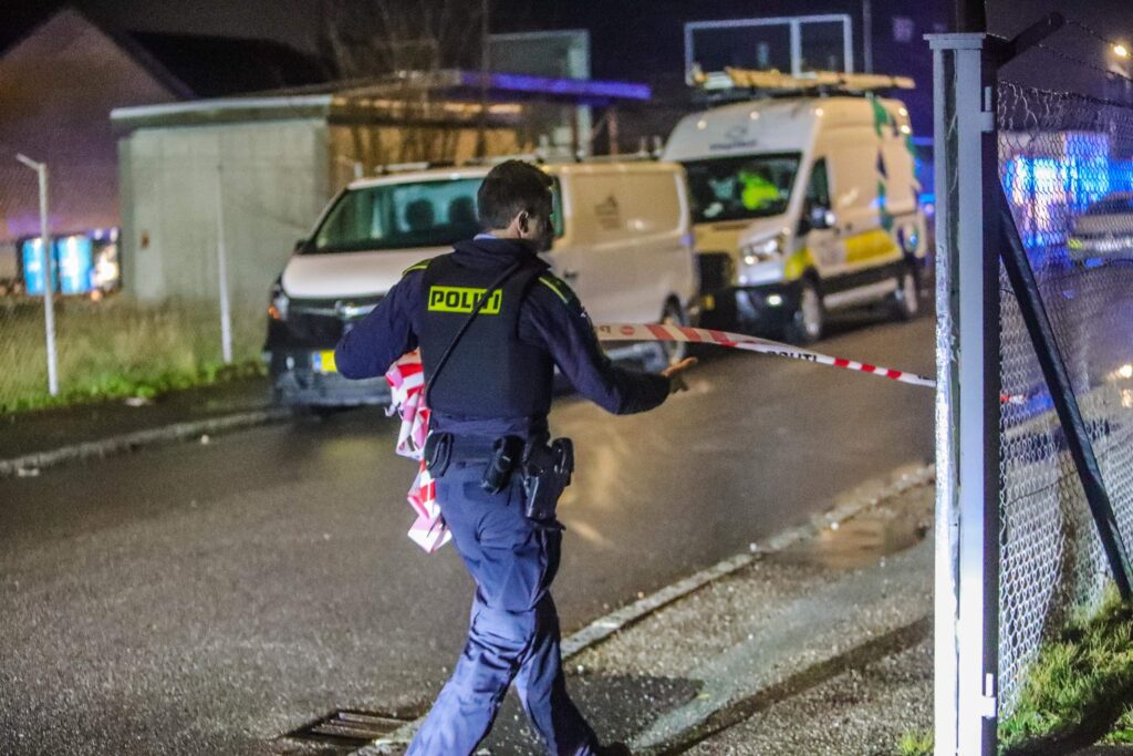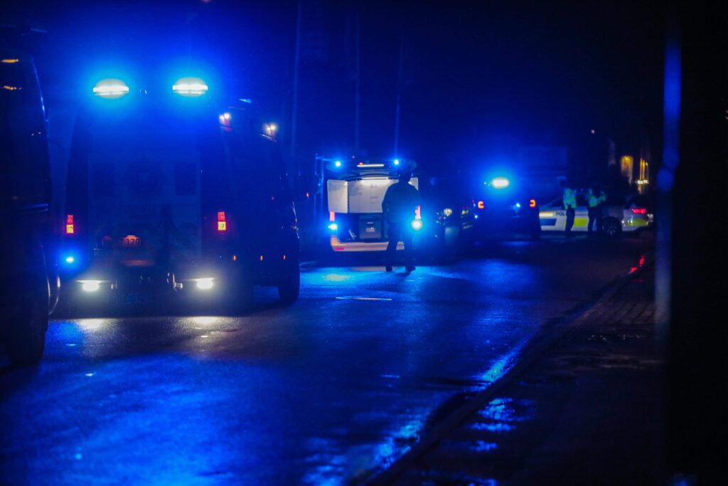 Brandvæsenet har branden under kontrol og politiet har afspærret området, imens slukningsarbejdet er i gang.
