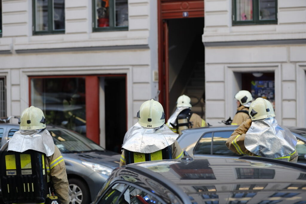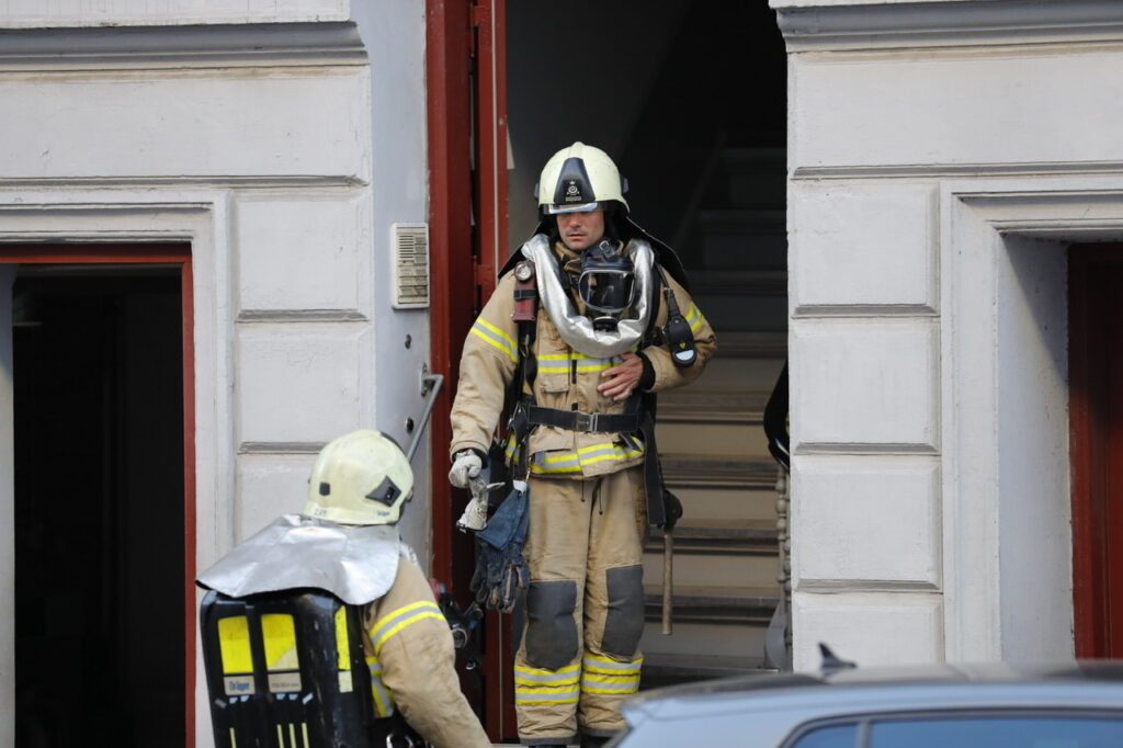 Gaden blev spærret mens brandfolk slukkede og luftede ud.