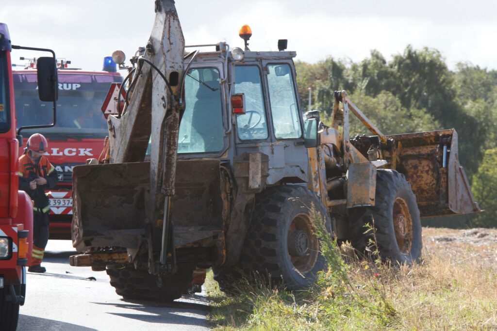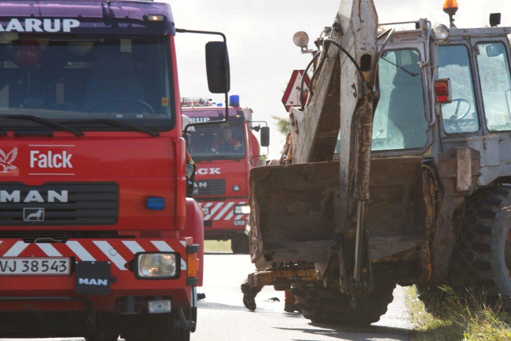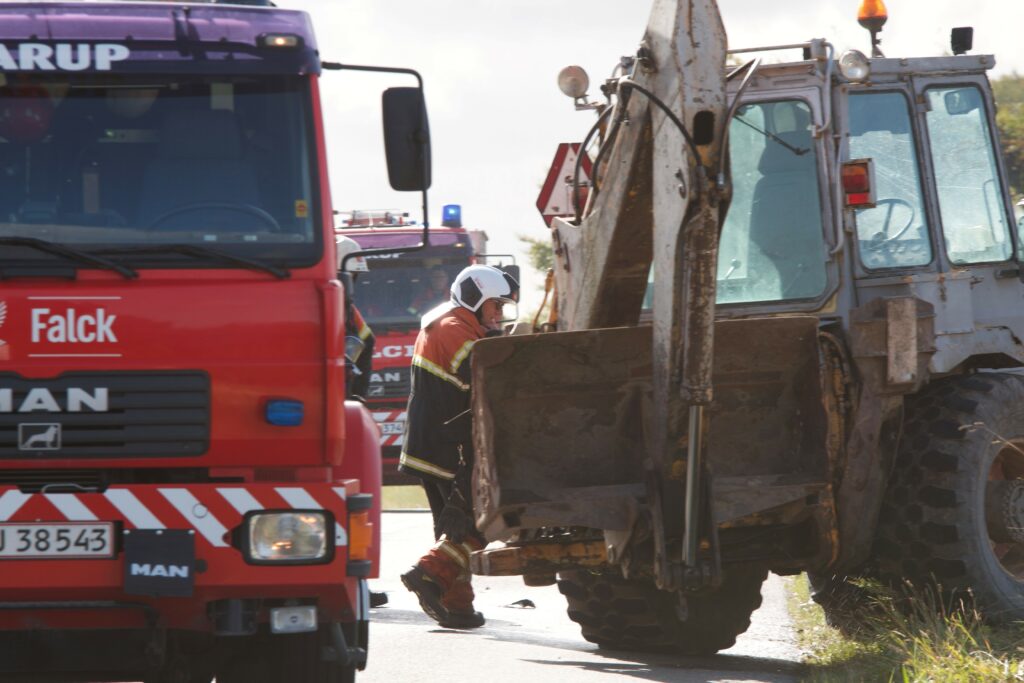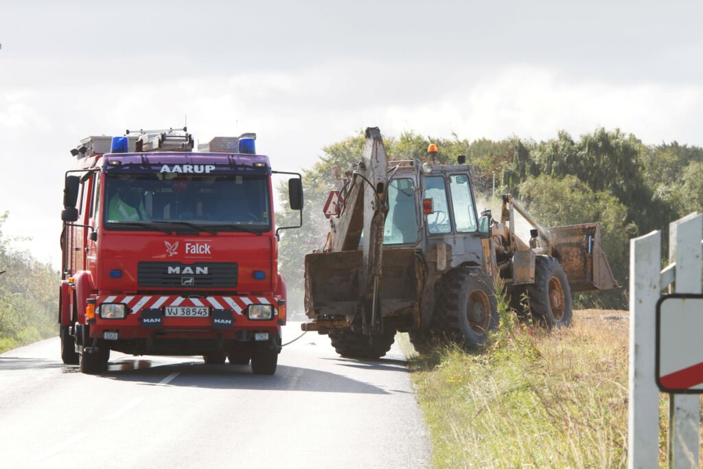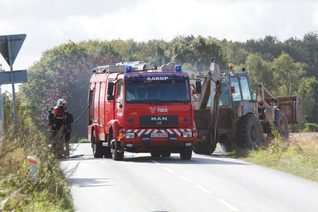 Der udbrød torsdag formiddag brand i en rendegraver på Søndergaardevej nær Aarup på det vestlige Fyn.