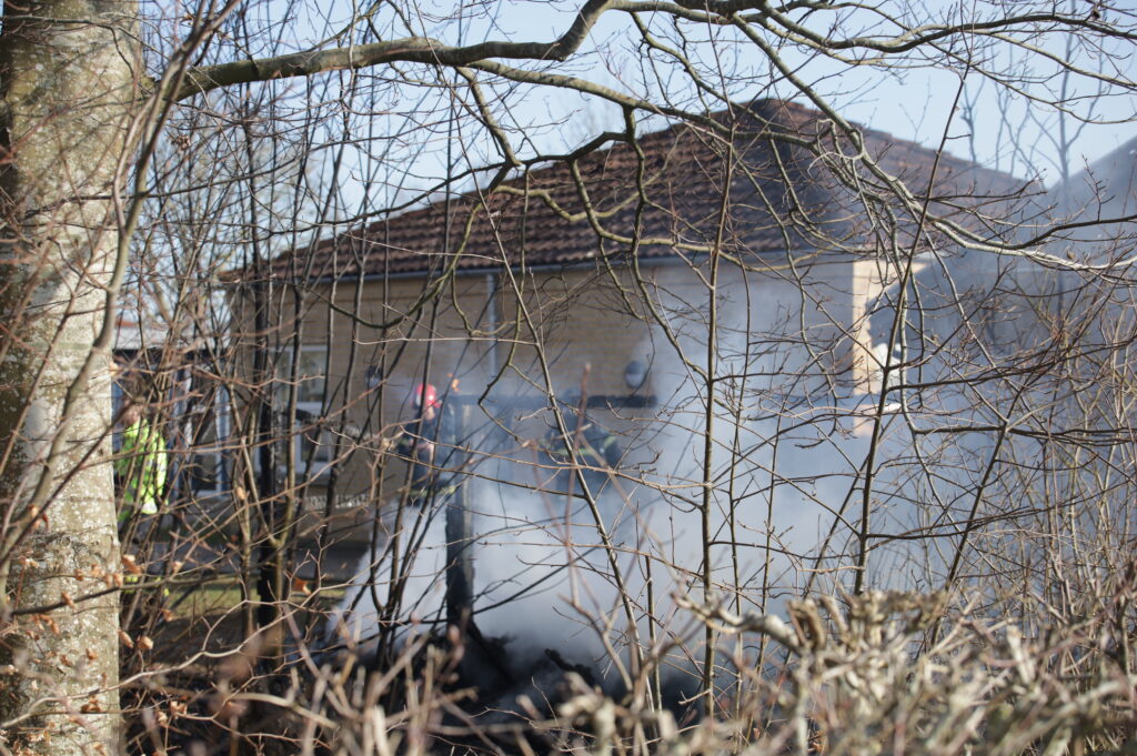 Brandvæsnet er søndag eftermiddag til stede på Lyngvænget i Ans by, hvor en brand er brudt ud i et skur.