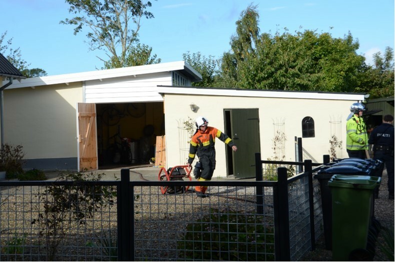 Der udbrød lørdag formiddag brand i et udhus på Kajbjergvej i Frørup på det østlige Fyn.