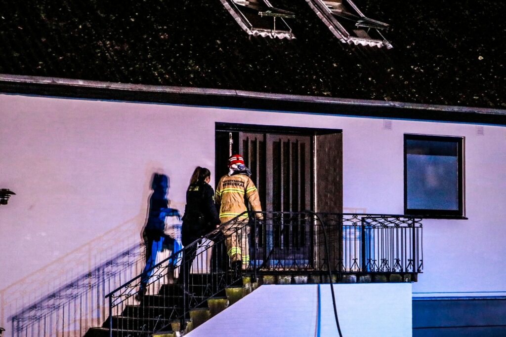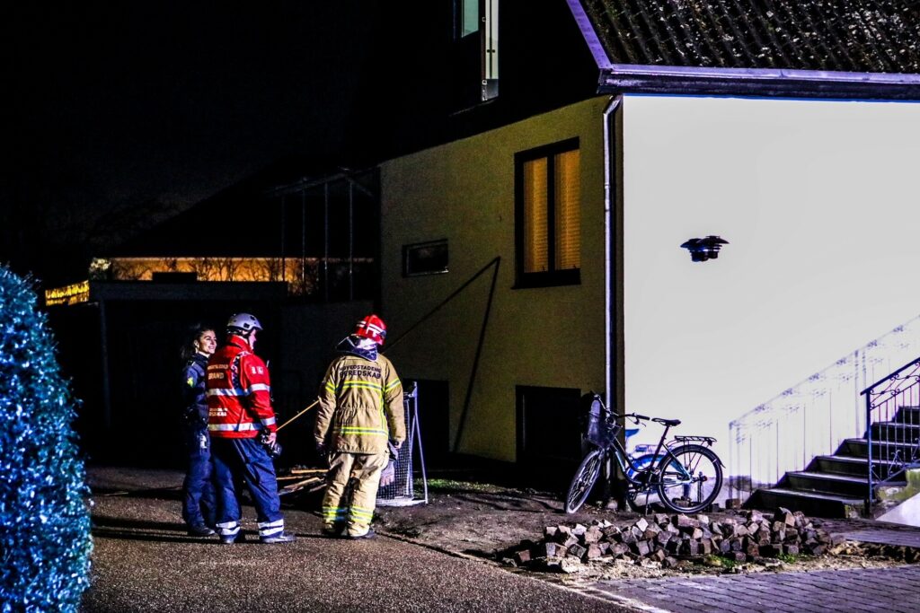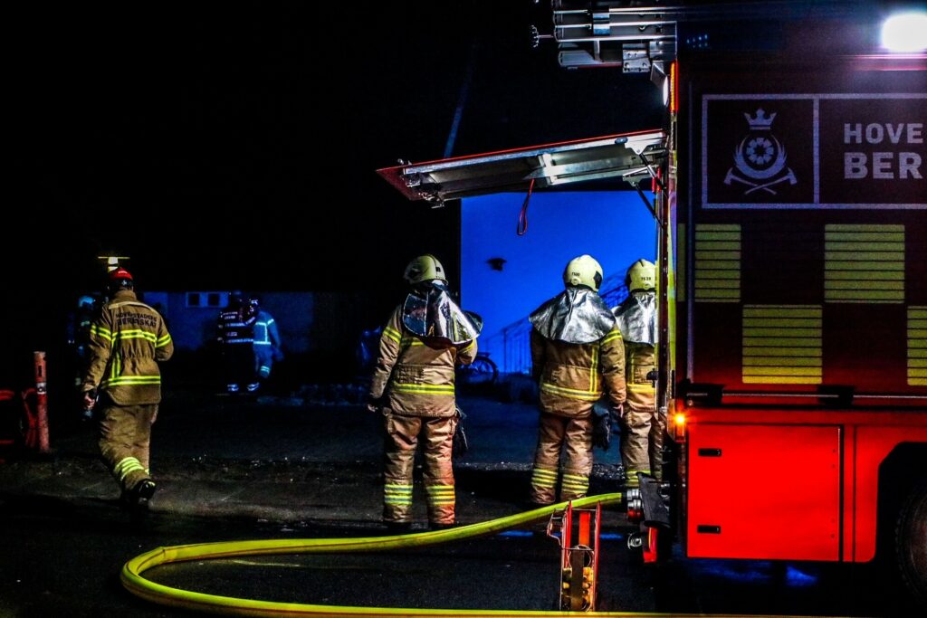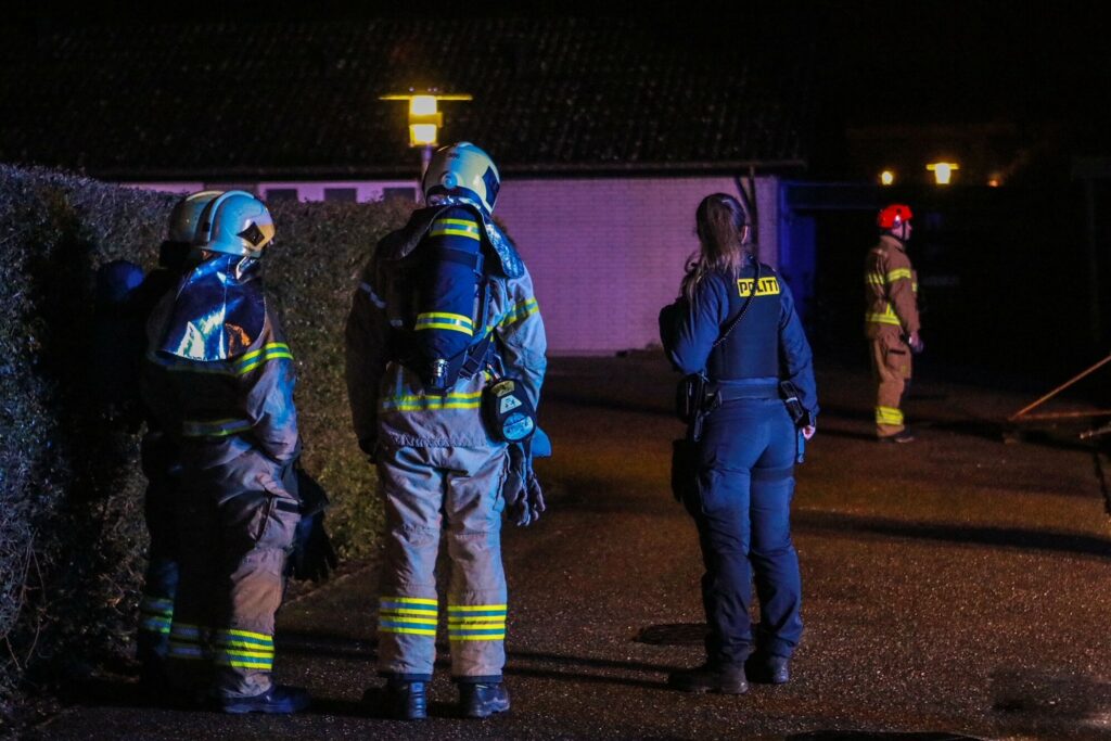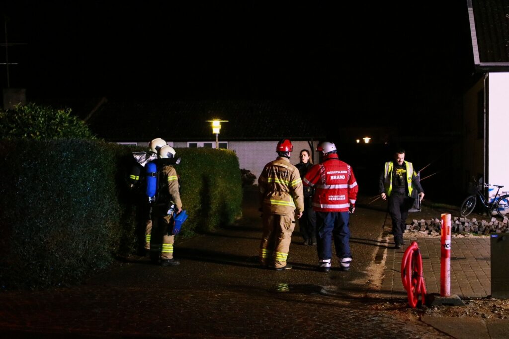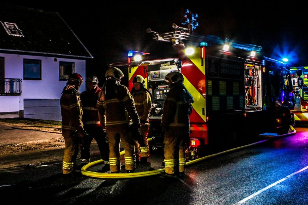 Brandvæsnet er på stedet, hvor slukningsarbejdet er i gang.