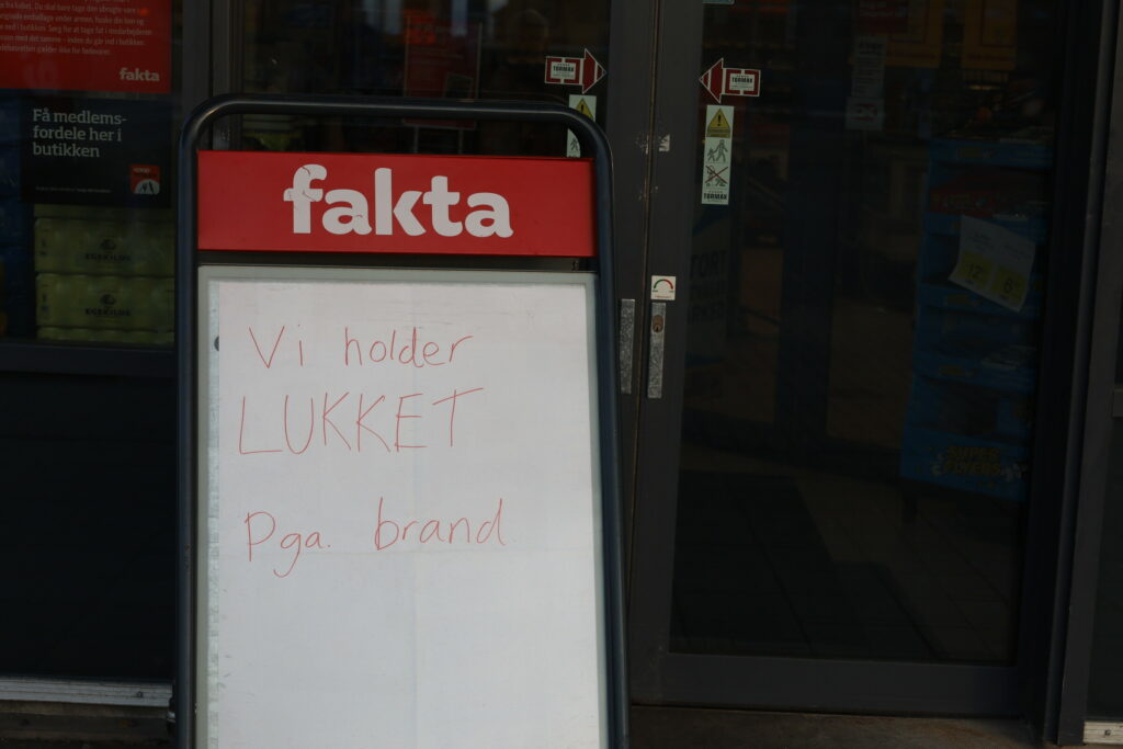 Fakta på Elmegade i Kalundborg er tirsdag lukket, efter en brand mandag aften brød ud i en flaskeautomat i supermarkedet og skabte så meget røgudvikling, at personalet var nødt til at begynde evakueringen af butikken, inden brandvæsnet nåede frem.
