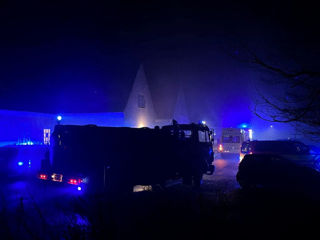 – Vi er til stede derude i forbindelse med en bygningsbrand i institution. Vi får en automatisk brandalarm klokken 19:24 og da vi kommer derud, kan vi konstatere, at en del af bygningen er overtændt, siger Ole Vanghøj, som er vagtchef ved Midt- og Vestjyllands Politi.