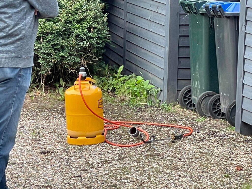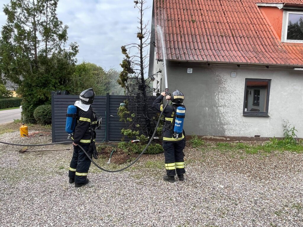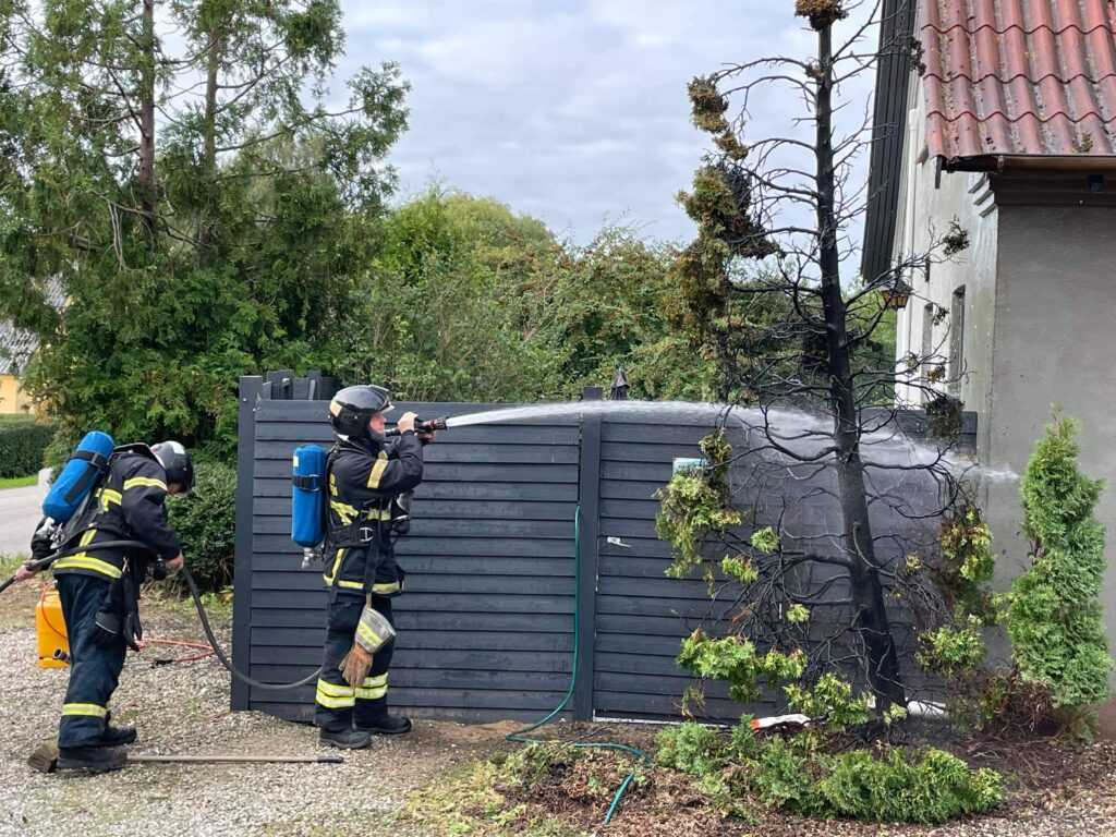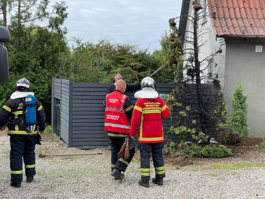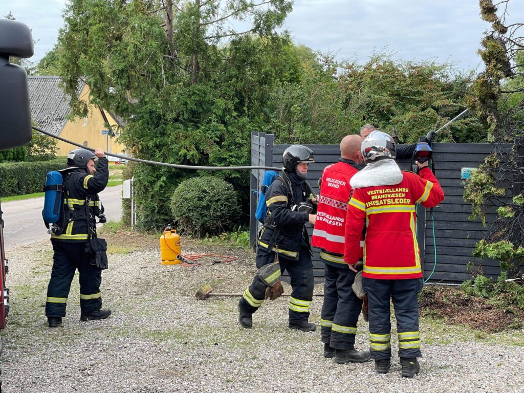 Søndag formiddag er brandvæsnet til stede ved en villa på Egebjergvej i Grevinge/Frenderup hvor der er udbrudt brand i et træ som står op af husmuren, efter brug af ukrudtsbrænder.
