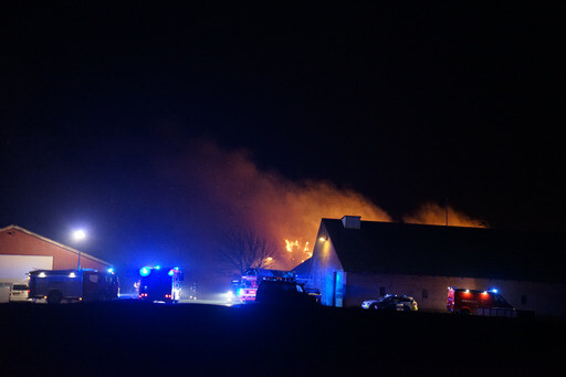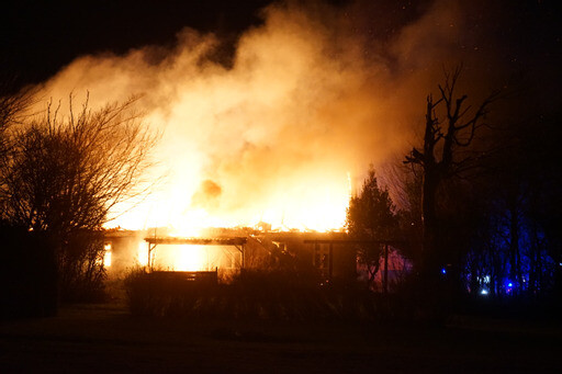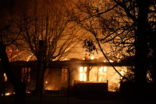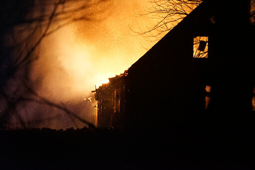 En brand er brudt ud i et stuehus og spreder sig hurtigt på gården.