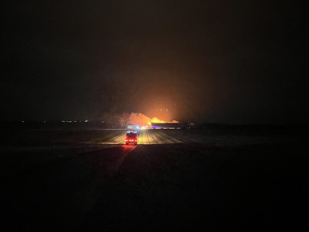 Brandstation Hurup er søndag aften talstærkt til stede på Stenbjergvej i Snedsted.