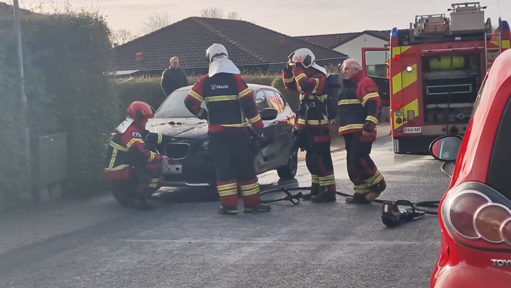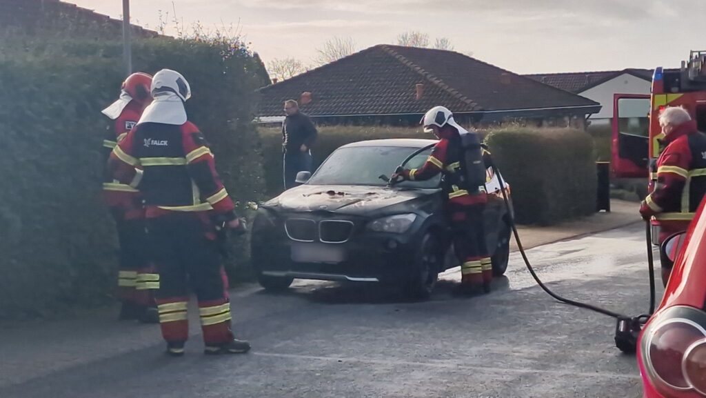 Ved ankomst til stedet overspulede brandfolk køretøjet med vand for at køle det ned.