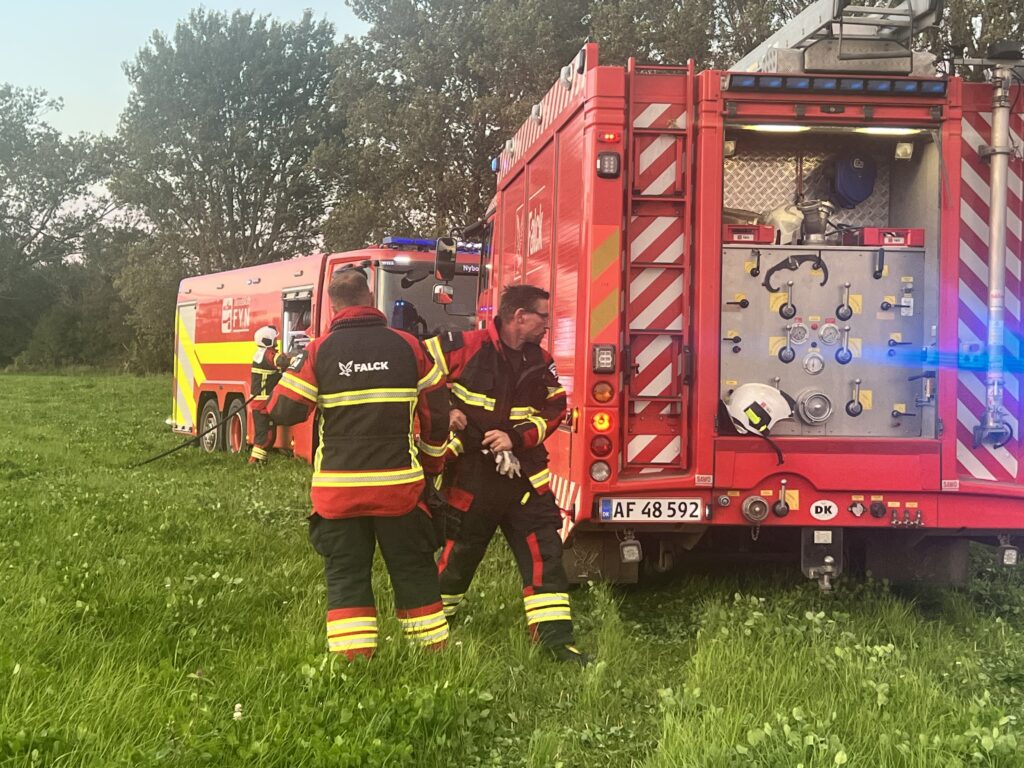 Brandvæsnet søndag aften til stede ved Hulemose ved Ullerslev på Fyn.