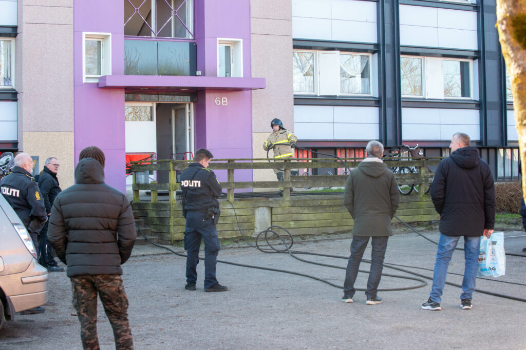 Brandvæsnet er i gang med slukningsarbejdet på stedet.