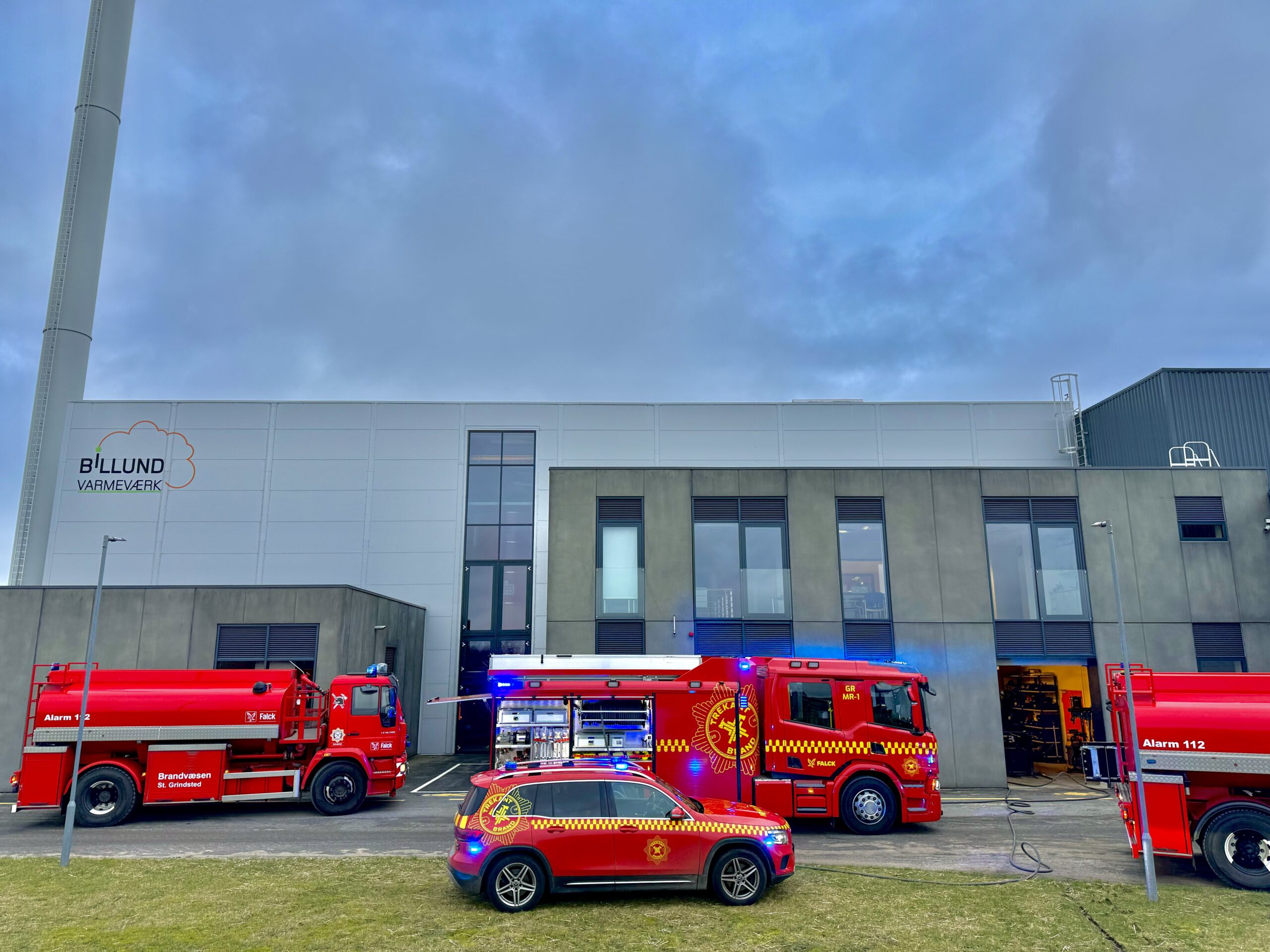 Derfor er mandskabet rykket ud med flere udrykningskøretøjer og efter kort tid er det konstateret, at der er brug for assistance til branden på Billund Varmeværk.