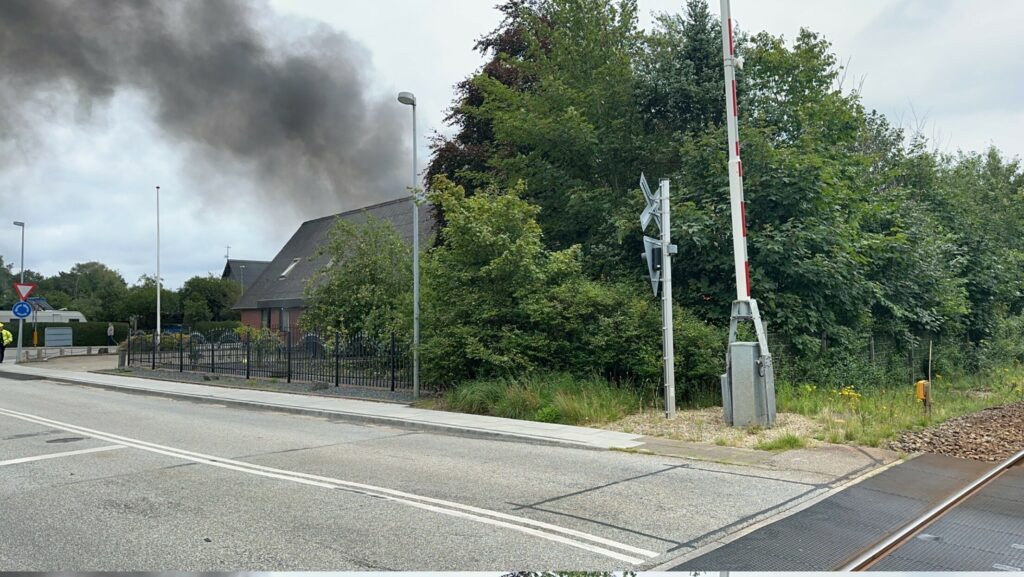 Lørdag eftermiddag er der udbrudt voldsom brand i et hus på Kølkær Hovedgade i Herning Kommune. Derfor er brandvæsnet hastet til stedet, hvor flammerne er flere meter høje.