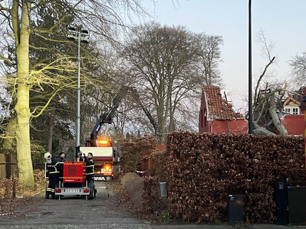 En bolig som under stormen blev knust under et træ i Gentofte, er søndag eftermiddag ved at bliver “befriet” fra træet.
