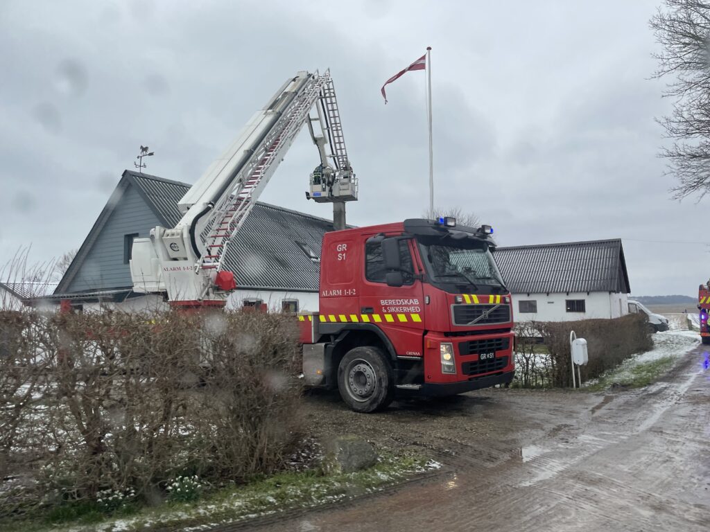 Branden er startet i en skorsten på Søholmvej ved Kolind, som hører til Syddjurs Kommune.