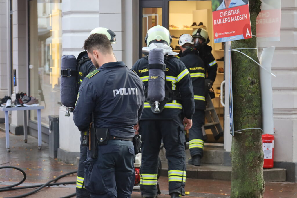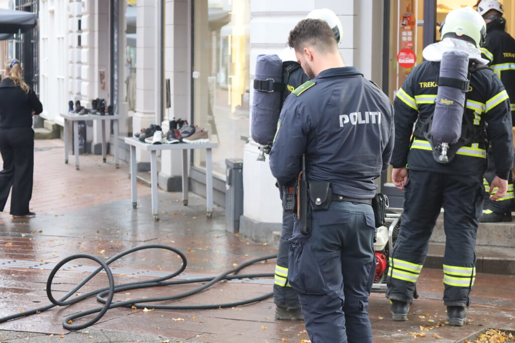 Brandvæsnet er i gang med slukningsarbejdet og har undersøgt bygningen for at være sikker på, at der ikke er nogen fare ved meldingen.