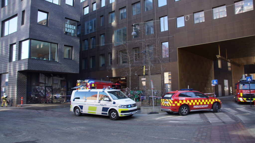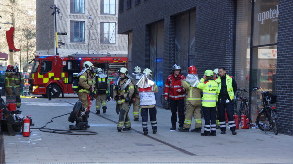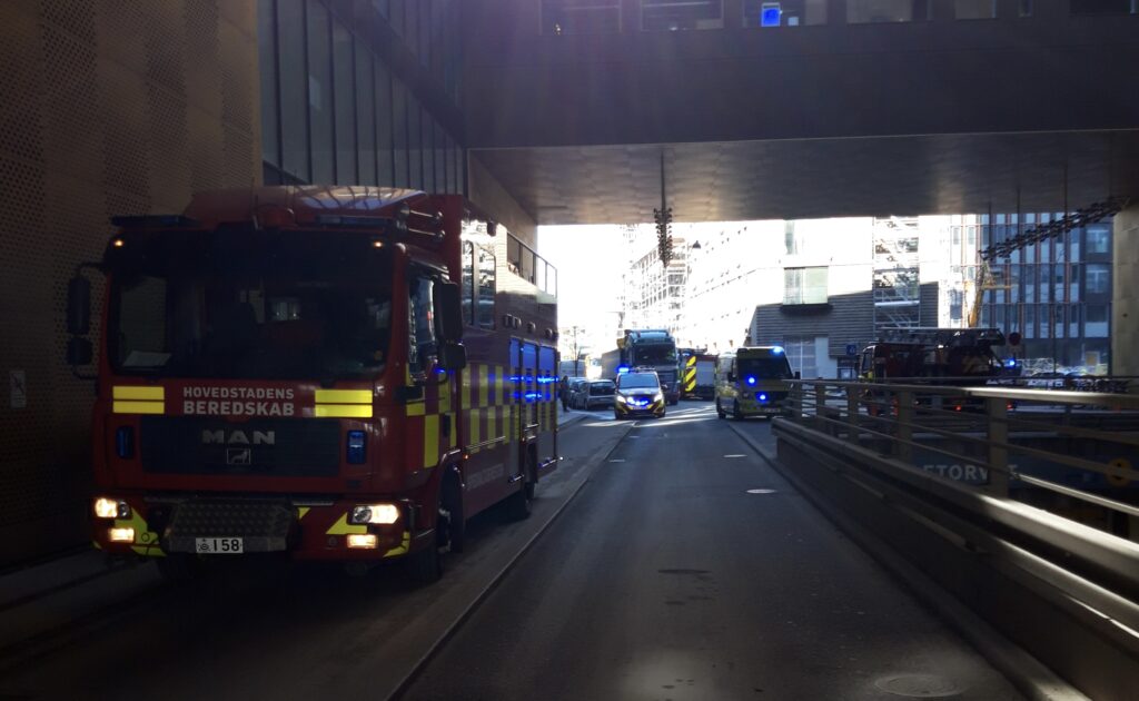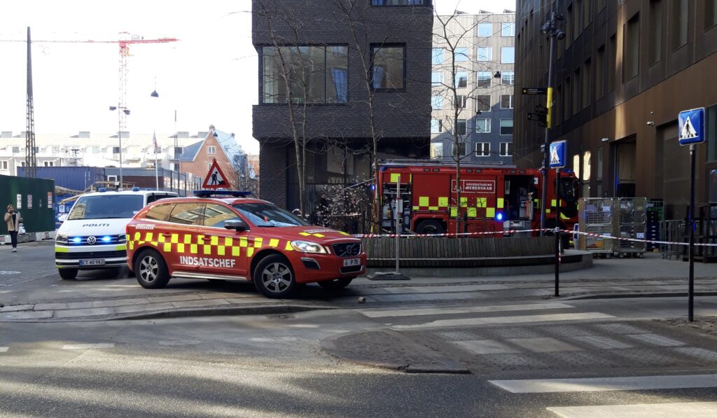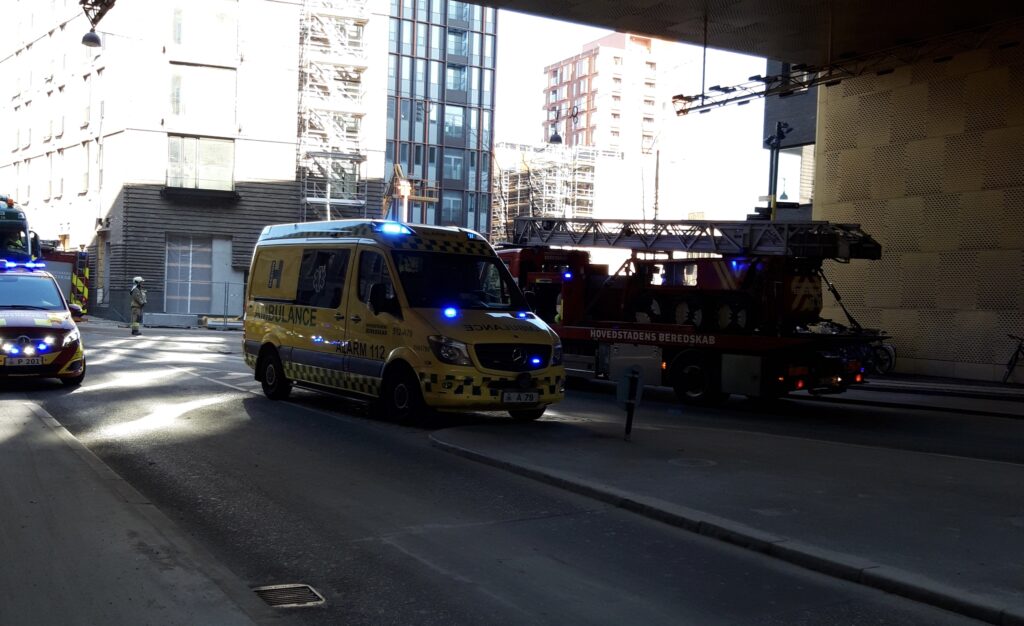 Brandvæsnet politi samt ambulance og læge er onsdag eftermiddag talstærkt til stede på Humletorvet ved Carlsberg byen i København.