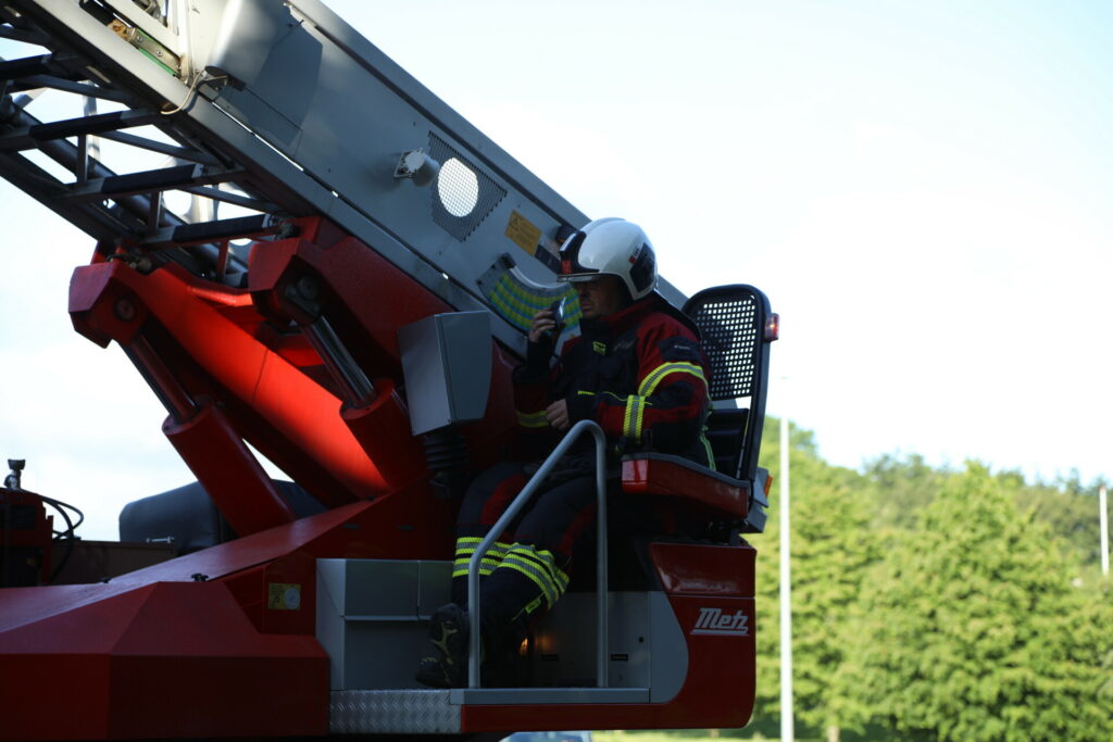 Brandvæsnet er i gang med slukningsarbejdet på stedet for at mindske en spredning til selve bygningerne.