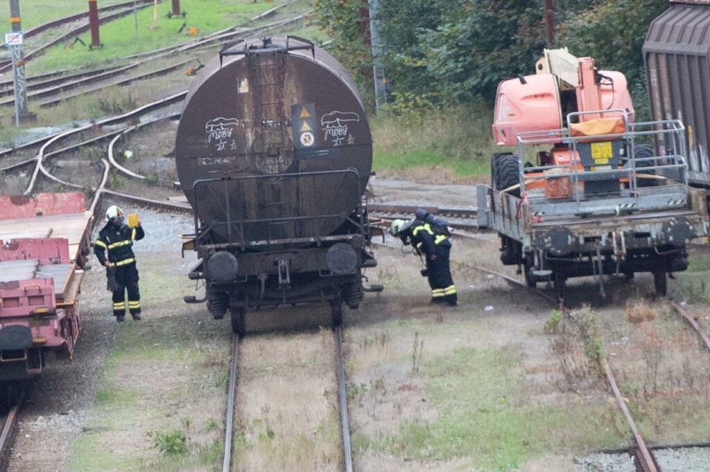 Brandvæsnet er lige nu i gang med deres undersøgelser ved en tank på stedet.