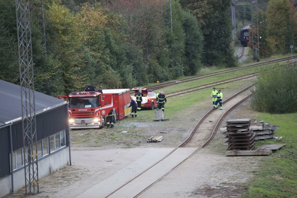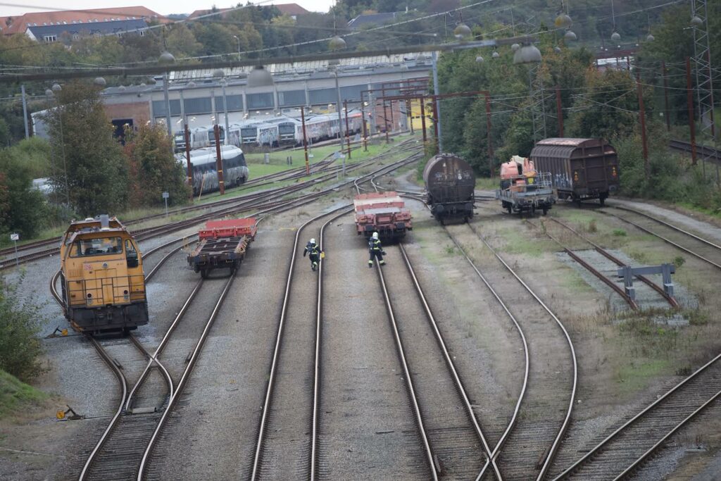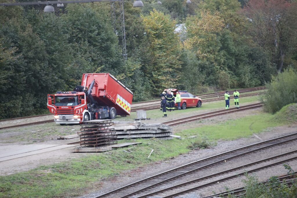 Trekantbrand arbejder lige nu på jernbanen ved Kobbelvænget i Fredericia.