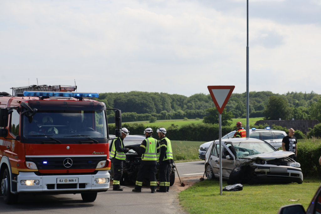 To biler har fredag eftermiddag været involveret i et voldsomt sammenstød i krydset mellem Bogensevej og Brovej i Brenderup på Fyn.
