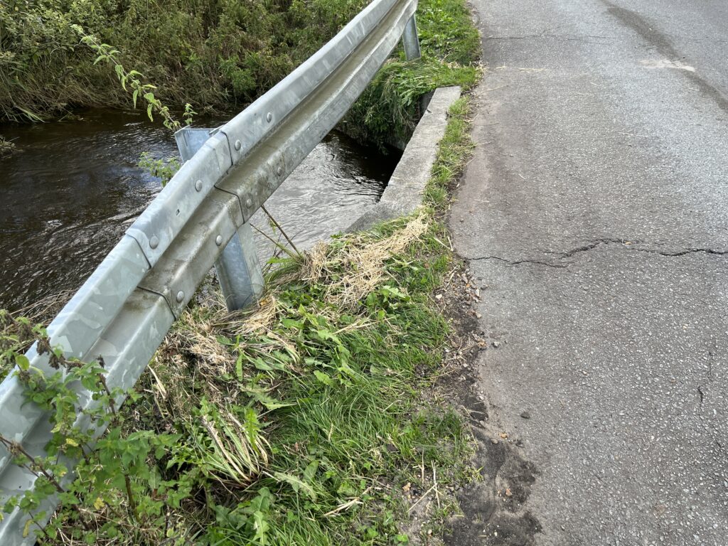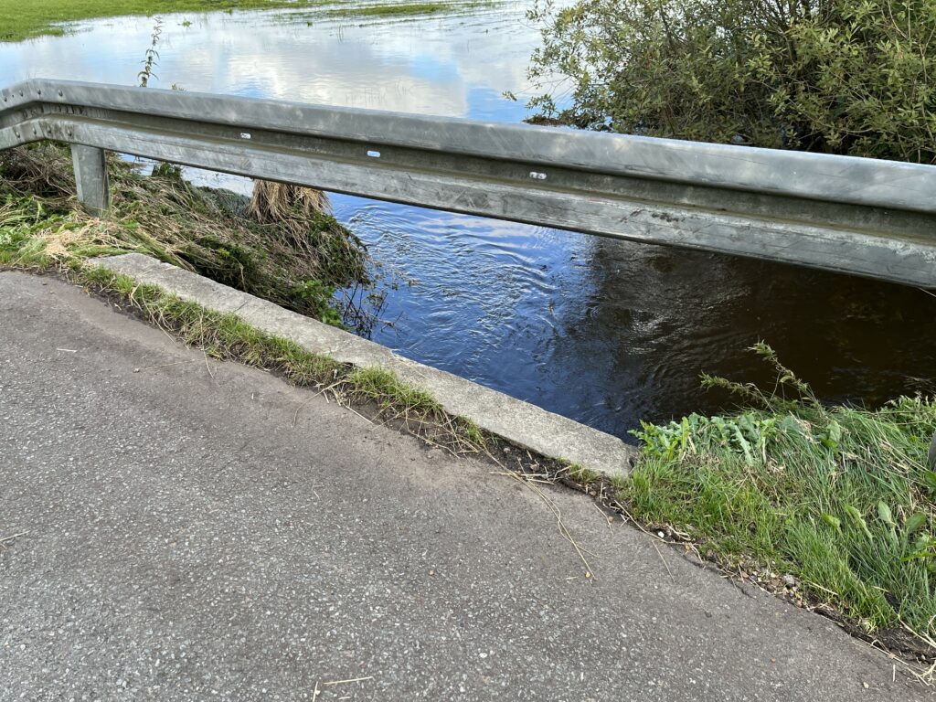 Efter de store regnmængder der kommet, er en mindre bro på Albækhedevej ved Kibæk tæt på at kollapse.