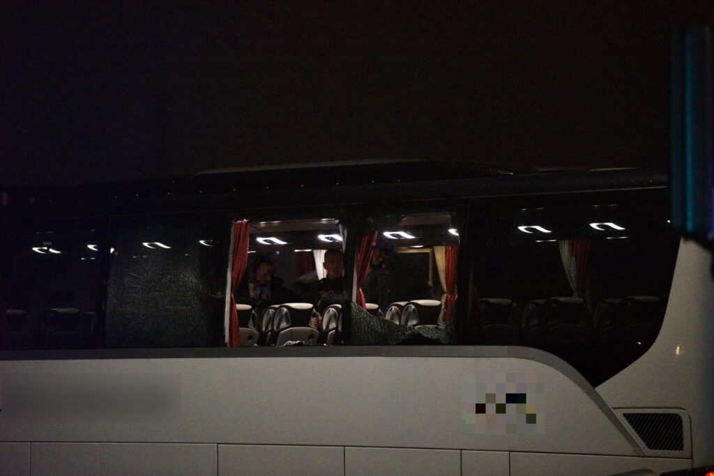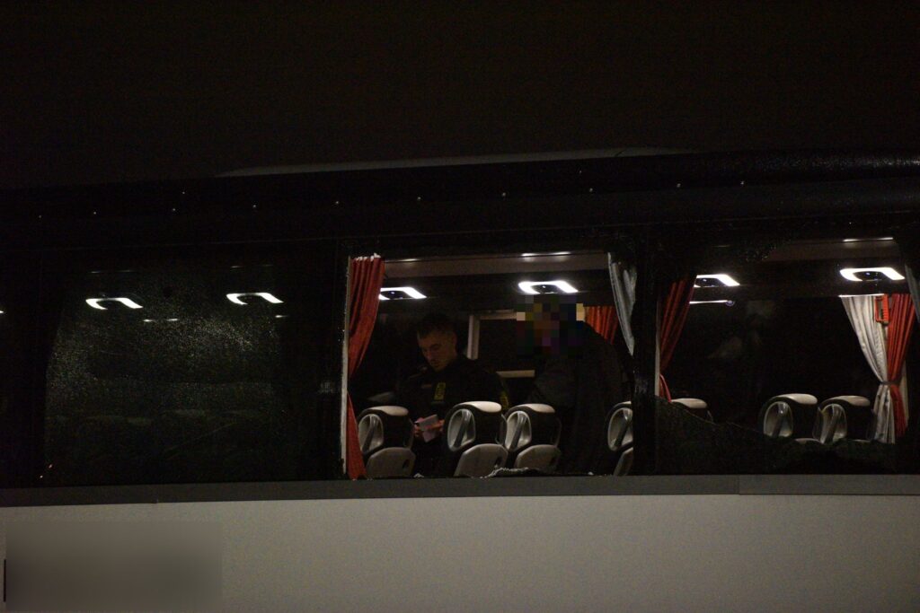 Chaufføren var kørt videre fra stedet, men en patruljevogn fik øje på de store skader på bussen og stoppede chaufføren.