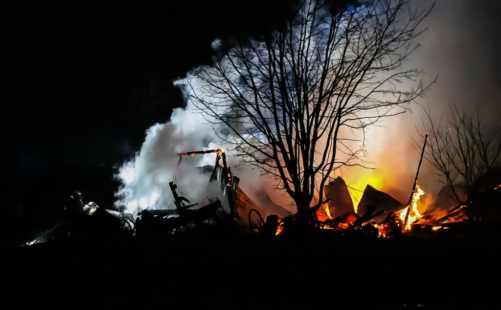 En voldsom gårdbrand på Viborgvej i Sabro natten til søndag.
