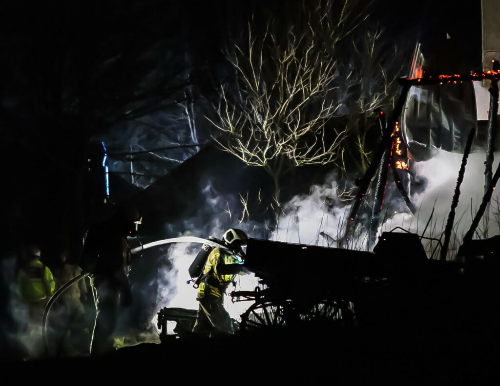 Bygningen er totalt udbrændt og flere brandstationer er tilkaldt for at hjælpe med slukningsarbejdet.