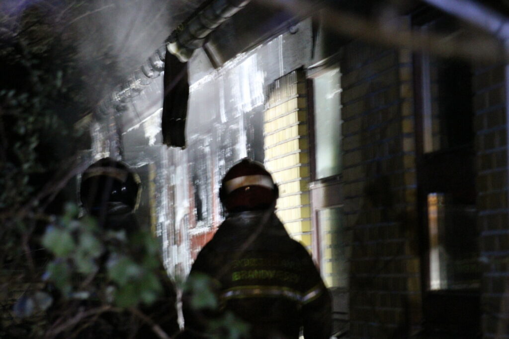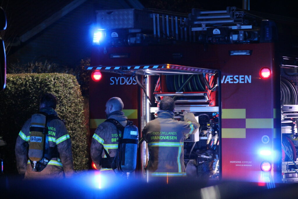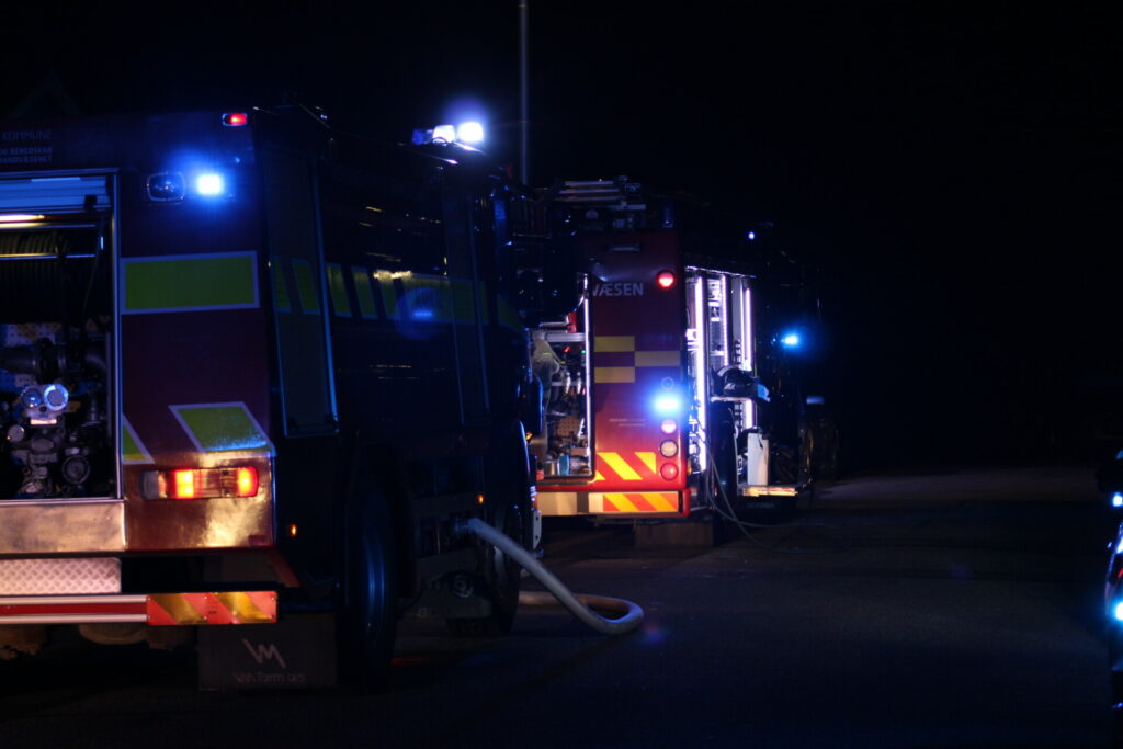 Brandvæsnet er på stedet og slukningsarbejdet er i gang på stedet.