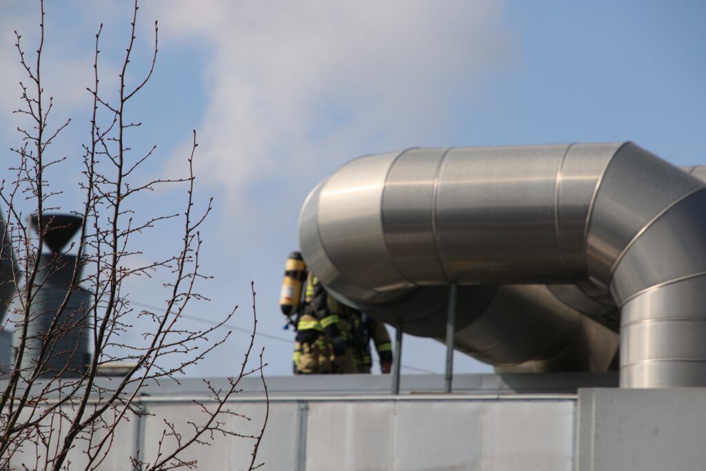 Brandvæsnet er ude ved bygningen og prøver i øjeblikket at få kontrol over branden.